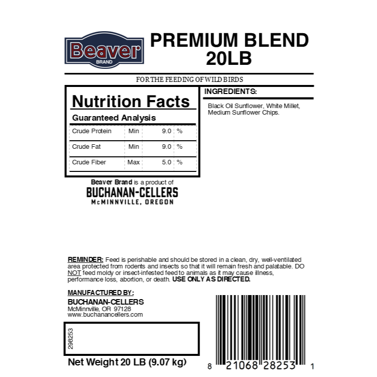 For the feeding of Wild Birds. A very high quality and economical blend of black oil sunflower seeds, white millet, and medium sunflower chips. This blend is ideal for wild birds.